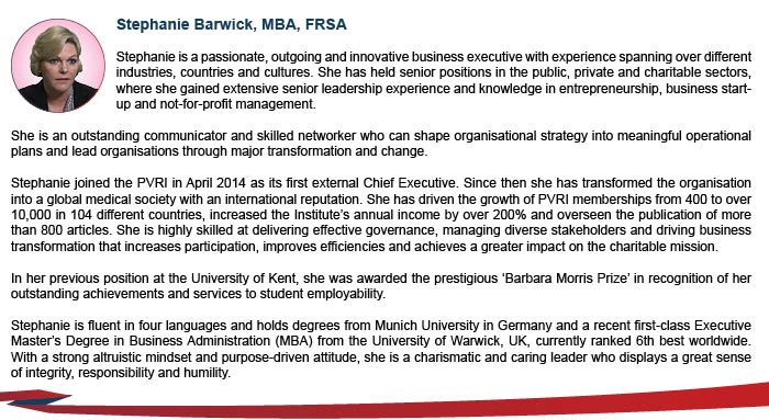 Stephanie Barwick, MBA, FRSAChief Executive Officer Pulmonary Vascular Research Institute (PVRI) London, UK |